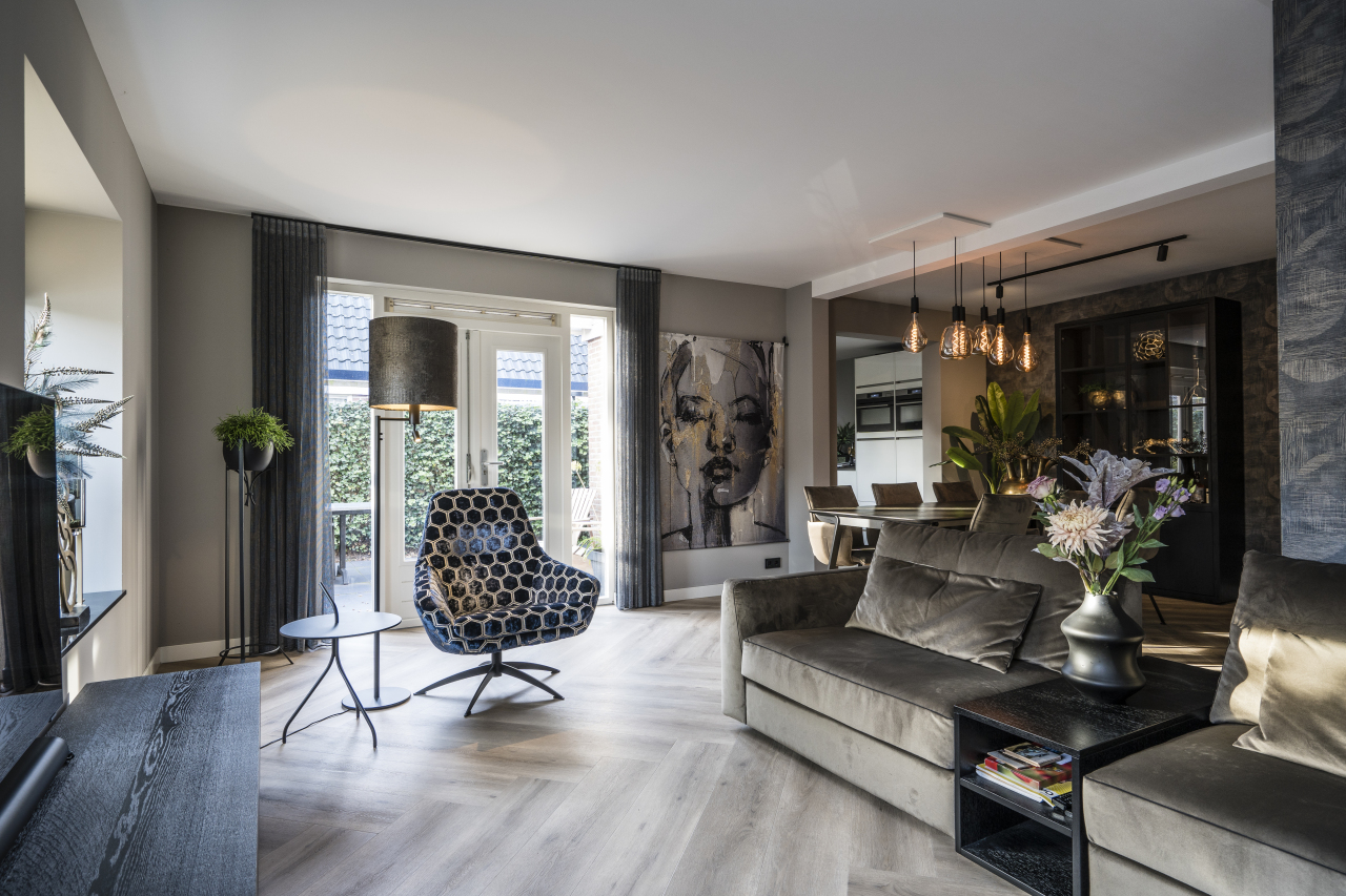 De bewoners van dit huis hebben we volledig mogen adviseren wat betreft de vloer, wanden en meubels. Ook is er aandacht besteed aan de accessoires om het helemaal af te maken.